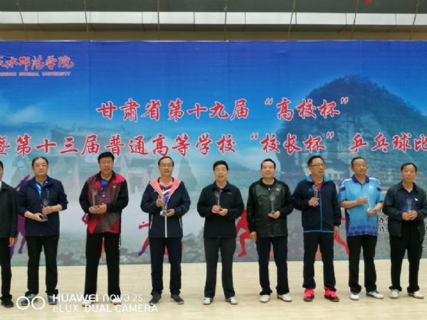 9月16日,由甘肃省教育厅主办、天水师范学院承办的甘肃省第十九届“高校杯”暨第十三届普通高等学校“校长杯”乒乓球比赛在天水师范学院落下帷幕。来自省内24所高校代表队的420余名运动员参加了比赛。经过三天紧张激烈的角逐,我校代表队在本次比赛中荣获佳绩。其中,教职工男女混合团体队获第五名,学生男子团体进入前八名,校长王华栋获 “校长组”单打第四名,教师刘冠男获优秀教练员称号。