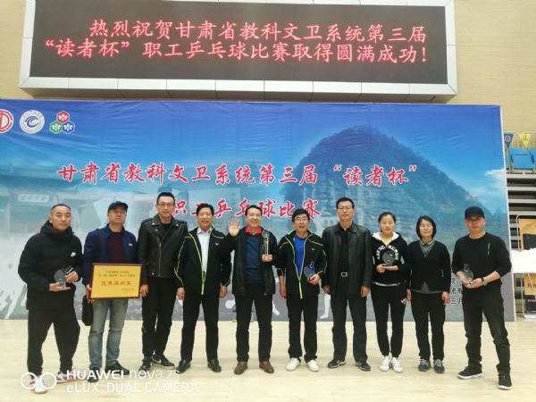 3月24日,甘肃省教科文卫系统第三届“读者杯”职工乒乓球赛在天水师范学院落下帷幕。来自省内教科文卫系统的34支代表队230余名运动员参加了比赛。经过三天紧张激烈角逐,我校代表队在本次比赛中荣获佳绩。其中,男女混合团体队获第三名,马文获青年组男子单打第八名,刘冠男获青年组女子单打第五名,刘斌获中年组男子单打第五名。马江获领导组单打第七名。我校工会荣获优秀组织奖。