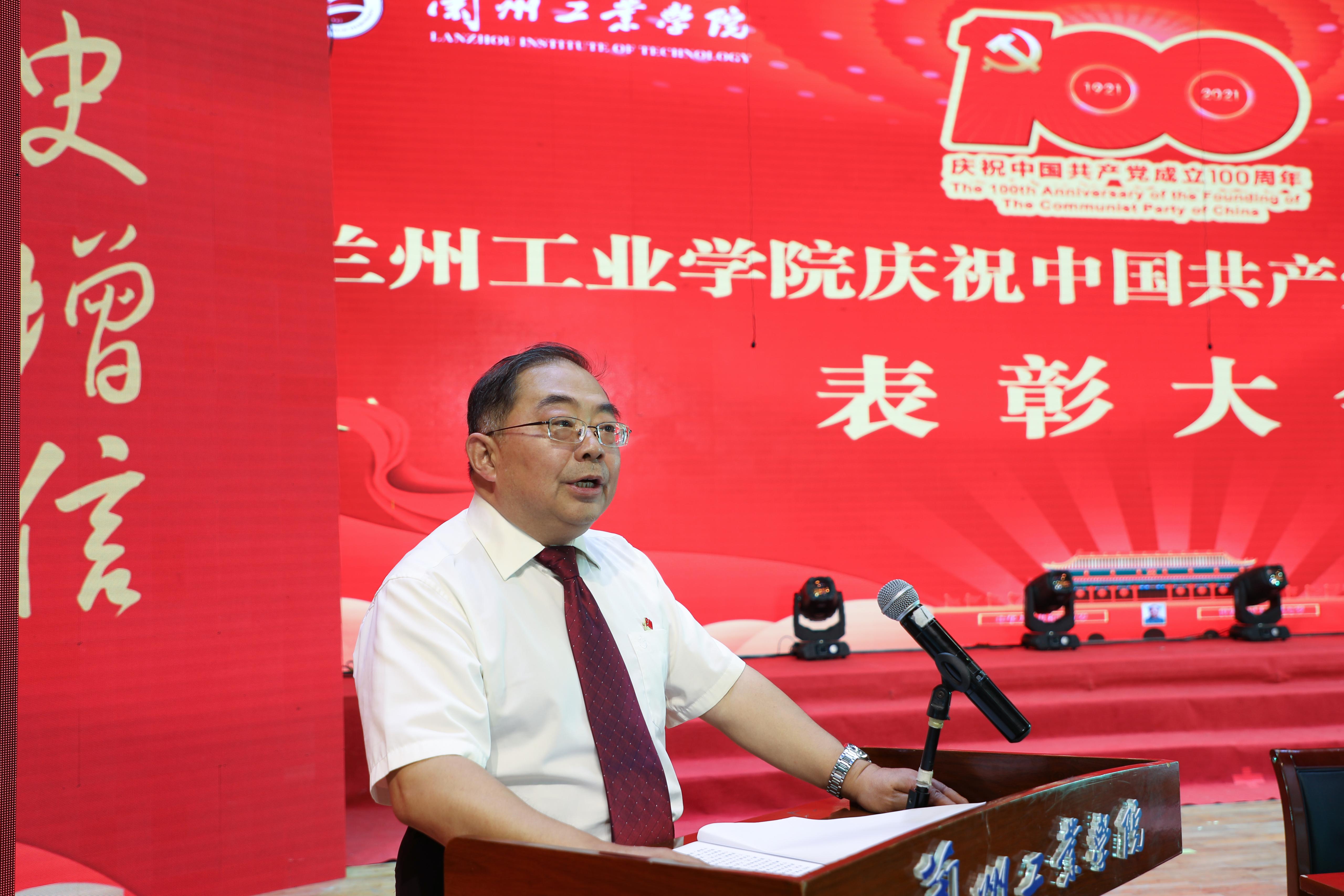 王华栋主持大会时强调,学校隆重召开庆祝中国共产党成立100周年表彰大会,缅怀党的光荣历史,讴歌党的丰功伟绩,表达对党的深情厚谊,通过表彰优秀共产党员、优秀党务工作者、先进基层党组织、脱贫攻坚先进个人和先进集体,引导广大师生党员坚持以习近平新时代中国特色社会主义思想为指导,进一步增强“四个意识”,坚定“四个自信”,做到“两个维护”。广大党员要以“七一勋章”获得者为榜样,坚定理想信念,弘扬奋斗精神,见贤思齐,团结拼搏,为推进我校转型发展凝聚力量。