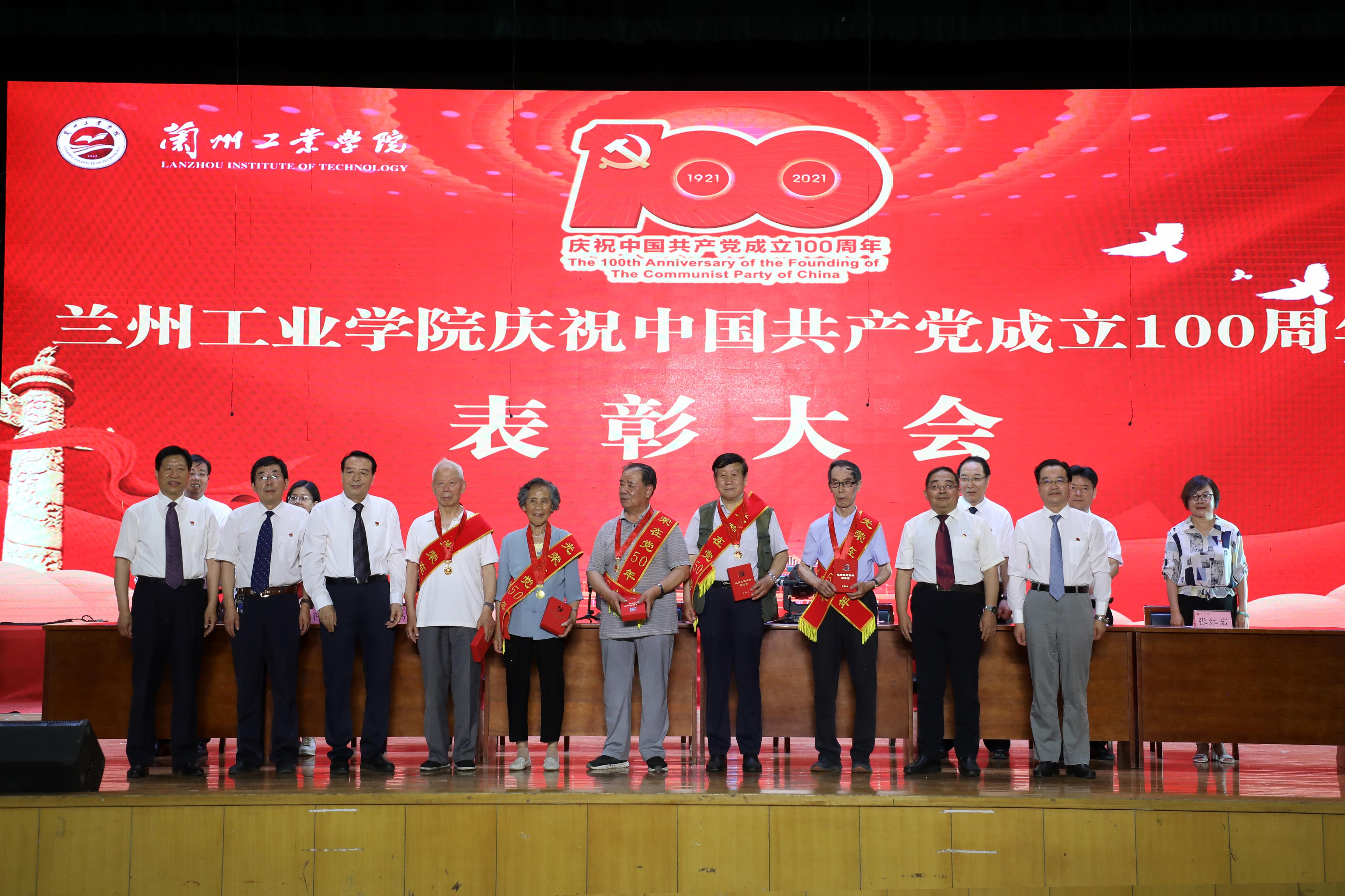 大会在庄严的国歌声中拉开序幕。廉志端宣读了学校《关于表彰优秀共产党员、优秀党务工作者和先进基层党组织的决定》;马铁信宣读了“光荣在党50年”纪念章获得者名单;马江宣读了《中共甘肃省委 甘肃省人民政府关于表彰全省脱贫攻坚先进个人和先进集体的决定》和学校《关于对苟彦清等同志嘉奖的决定》。与会领导为5位“光荣在党50年”代表颁发了纪念章,为100名优秀共产党员和优秀党务工作者颁发了荣誉证书,对8个先进基层党组织、1个全省脱贫攻坚先进集体和5名脱贫攻坚先进个人颁发了奖牌、荣誉证书。