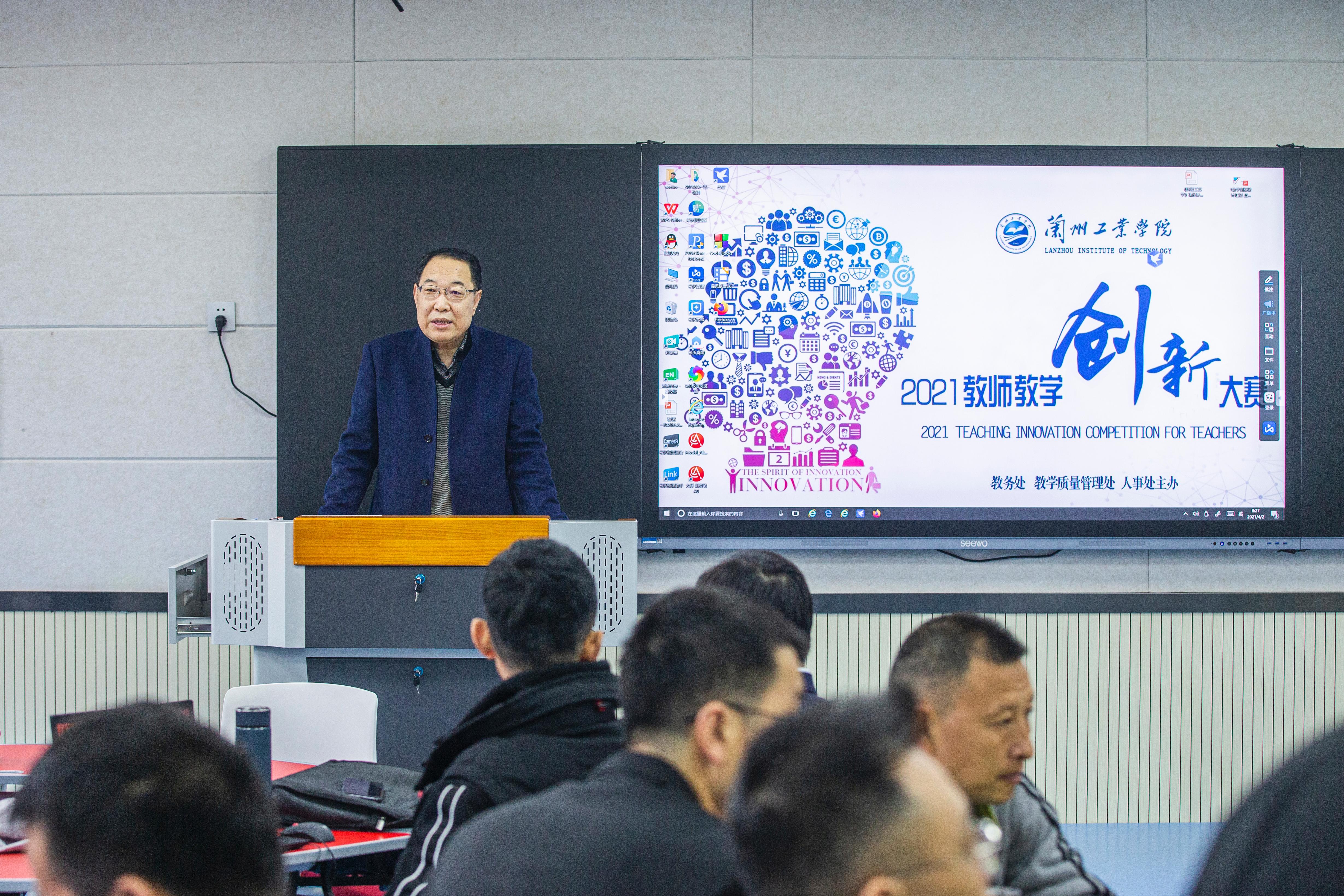4月2日,我校首届教师教学创新大赛决赛在第四教学楼举行,来自14个教学单位的37名教师(团队)在现场进行成果汇报展示。校长王华栋、副校长李贵山参加评审并进行指导。