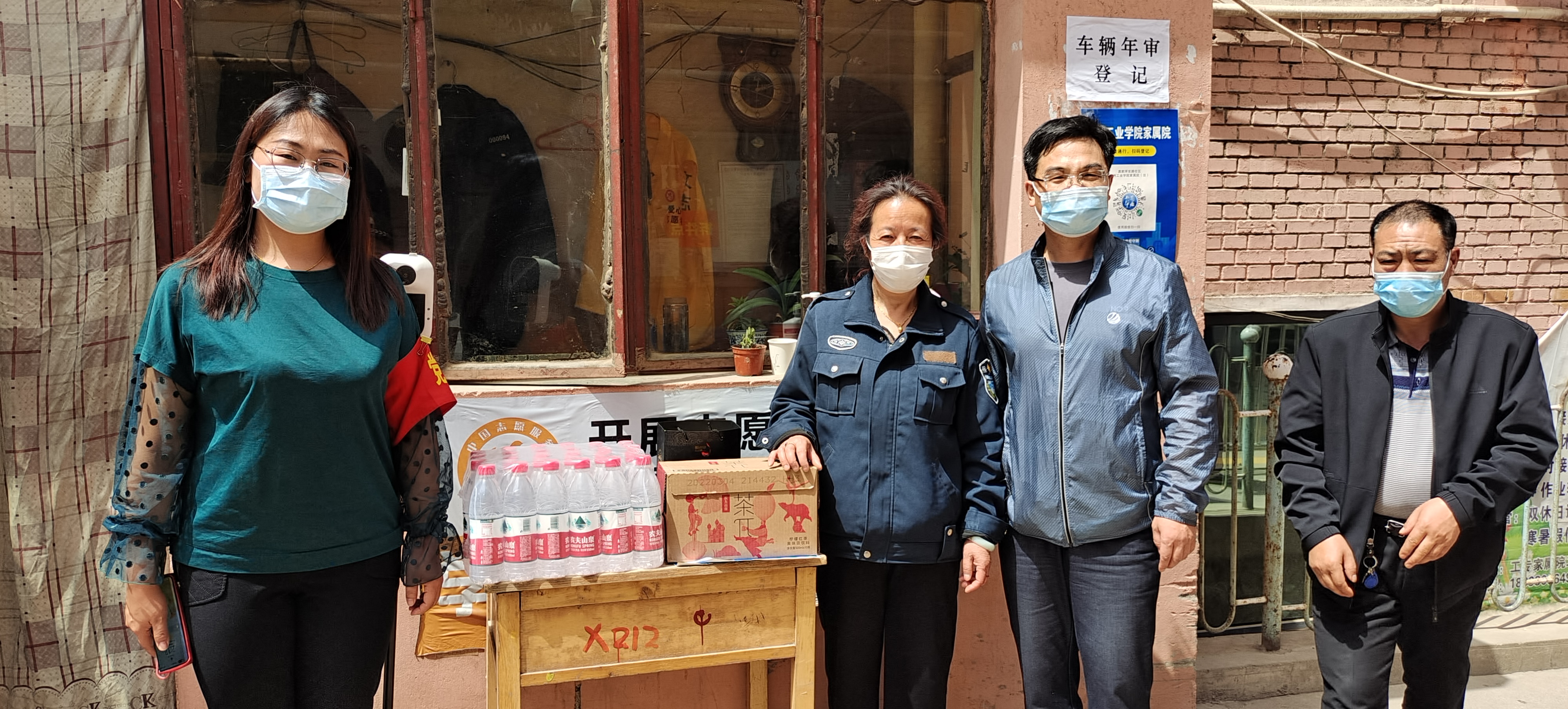 工会负责人许立新代表学校工会向坚守在学校疫情防控第一线的保卫处值班人员、社区工作人员、党员先锋岗值班人员表示诚挚的问候和衷心感谢,并送上了慰问品。