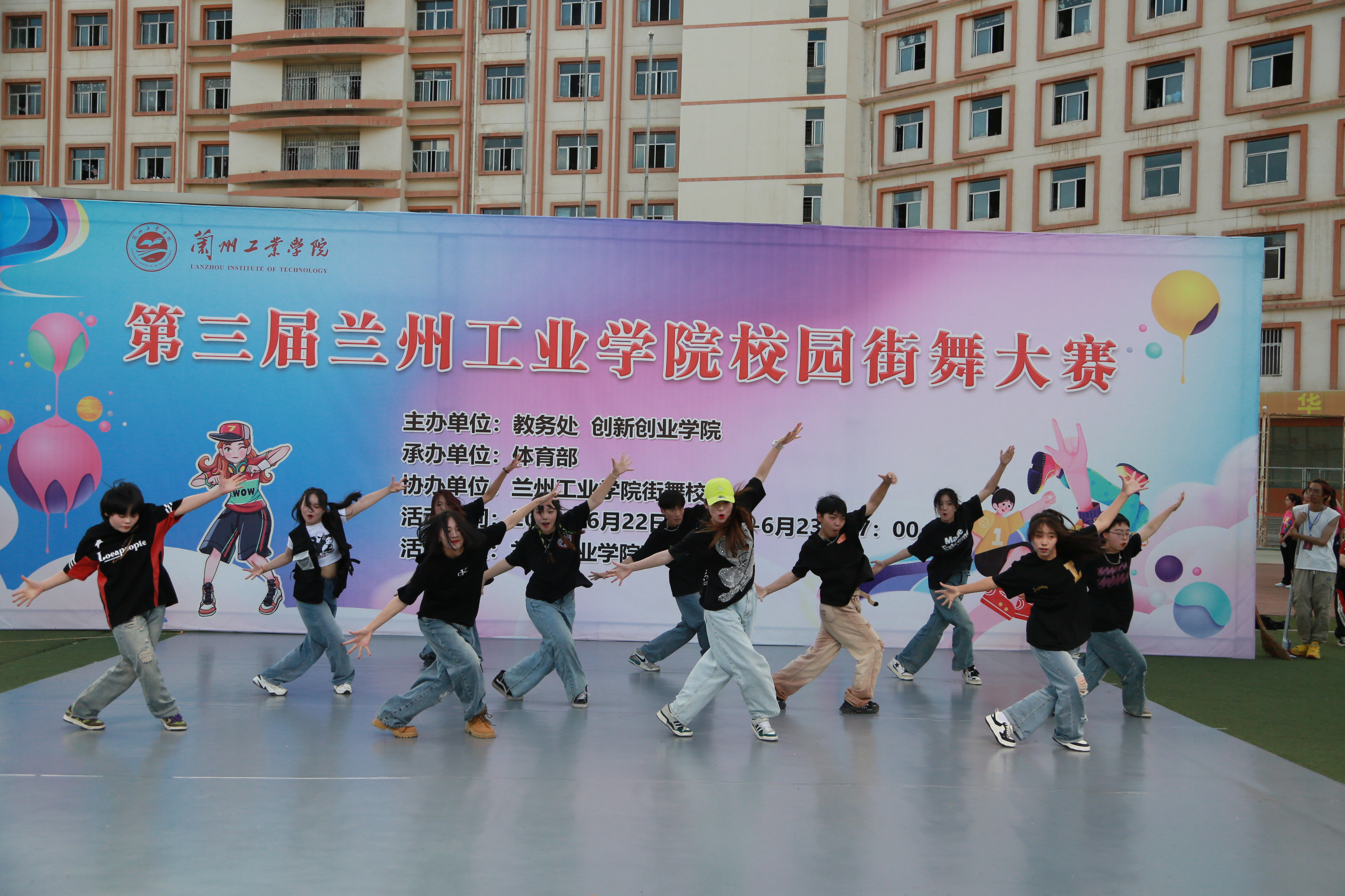 6月22日至23日,学校举办第三届校园街舞大赛。本届大赛由教务处、创新创业学院主办,体育部承办。来自兰州市各高校13支队伍的100多位选手同台竞技,用绚丽的舞姿展开一场青春角逐,让街舞梦想在舞台上激情绽放。学校党委宣传部、信息中心、艺术设计学院、体育部负责同志,以及部分教师观看开幕式。