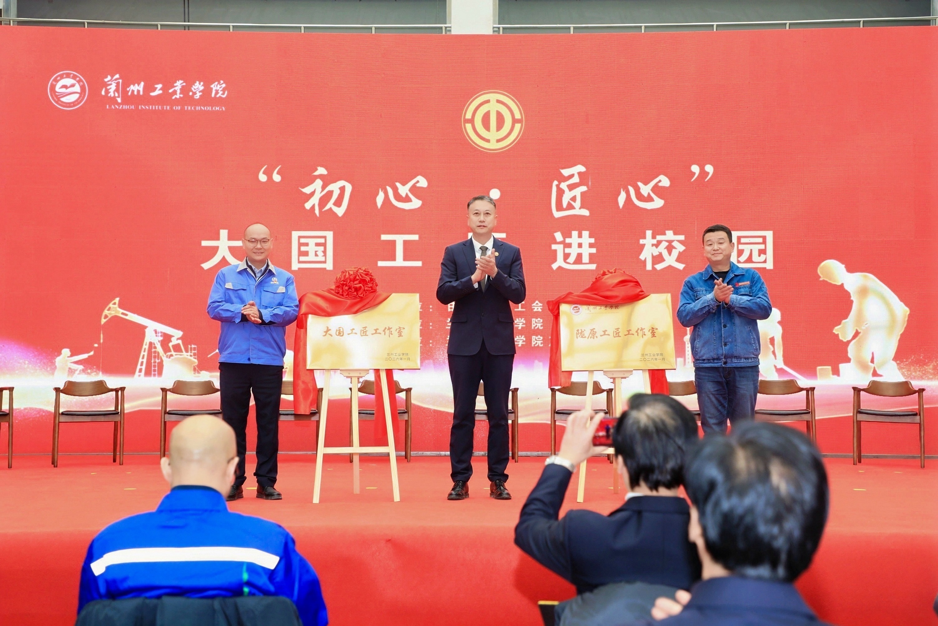 活动仪式上,白江平分别与兰州工业学院校友、大国工匠张勇,陇原工匠马延斌为“大国工匠工作室”“陇原工匠工作室”揭牌,刘新辉为10位大国工匠、2位陇原工匠分别颁发学校“产业教授”聘书。