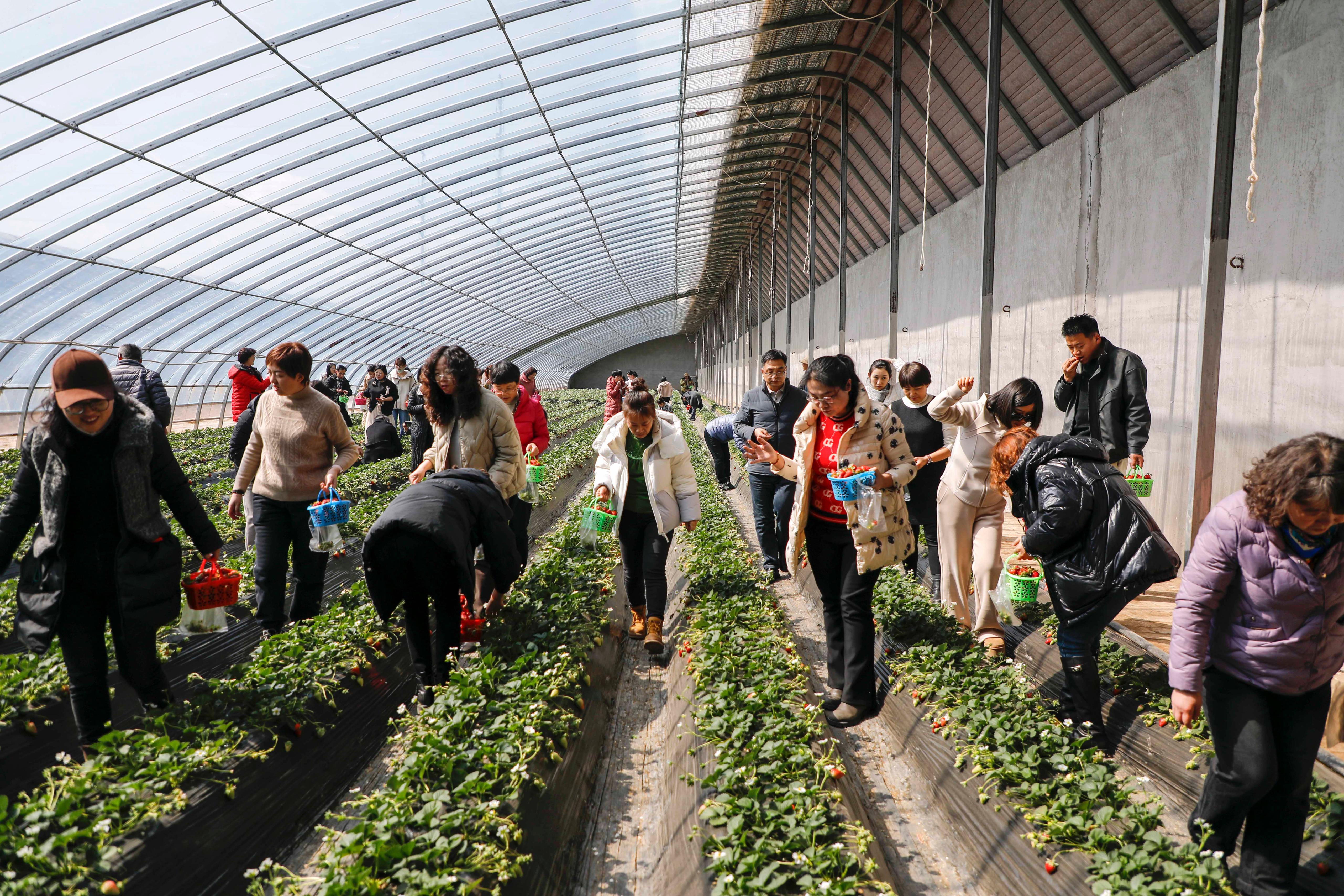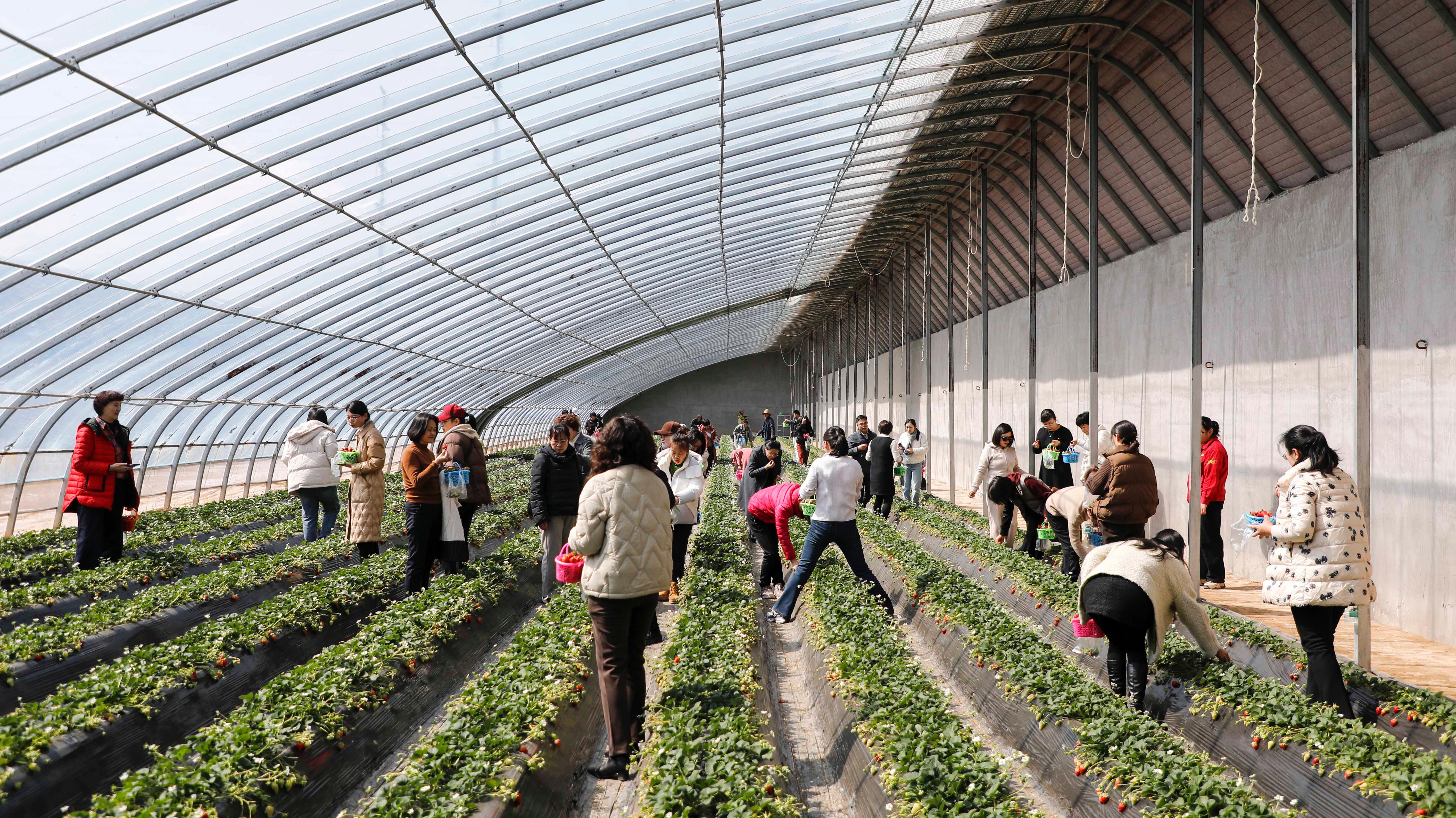 活动当日,在采摘园工作人员简要介绍采摘注意事项后,大家们手持采摘篮,开启了欢乐的采摘活动。所有人小心翼翼地穿梭在田垄间,仔细挑选着心仪的草莓,一边采摘,一边交流,分享着生活中的趣事,欢声笑语回荡在整个大棚。