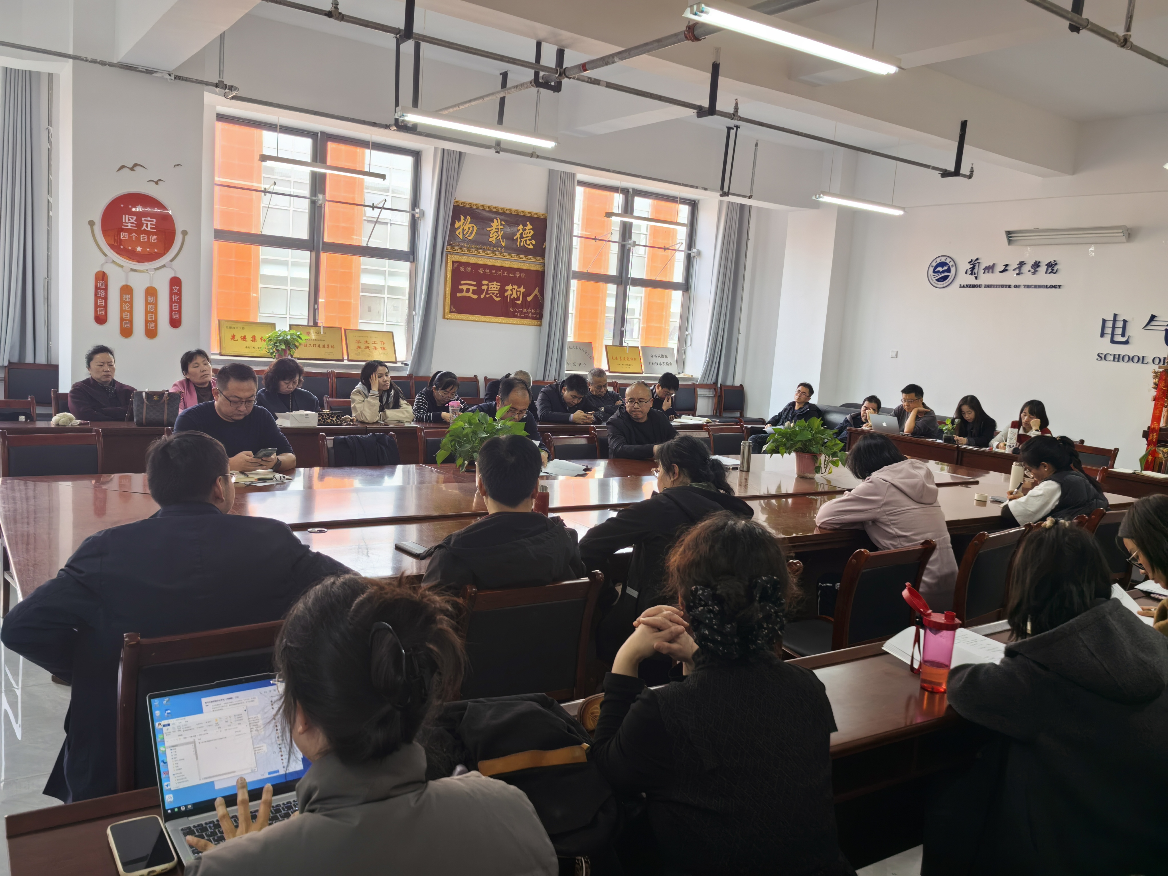 11月4日下午,学院分工会召开全院教师大会,传达学习了学校第十次本科教育教学审核评估工作推进会精神,安排了学院审核评估期间的教学工作及学生管理工作;组织全体老师学习了《学校本科教育教学审核评估线上评估工作手册》《关于严明学校本科教育教学审核评估期间工作纪律的通知》《关于印发兰州工业学院本科教育教学审核评估线上线下评估工作方案的通知》等文件精神,系主任分别就做好本系的教学资料准备、值班等工作作了发言。